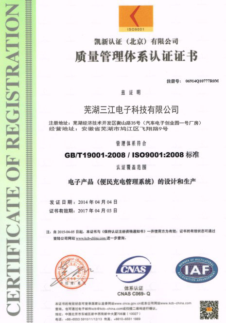 蕪湖三江電子科技有限公司,位于美麗的江城蕪湖,是一家目前國內專業從事智能式自助產品的研發、生產、銷售及自助產品服務為一體的科技型企業。主要經營:電動車充電站,電動車充電站配件,小區充電站,便民充電站、投幣充電站、手機支付充電站、刷卡充電站、智能充電站、智能充電系統等。歡迎大家來公司參觀考察!公司秉承“顧客至上,銳意進取”的經營理念,堅持“客戶至上”的原則為廣大客戶提供優質的服務。歡迎廣大新老客戶惠顧!